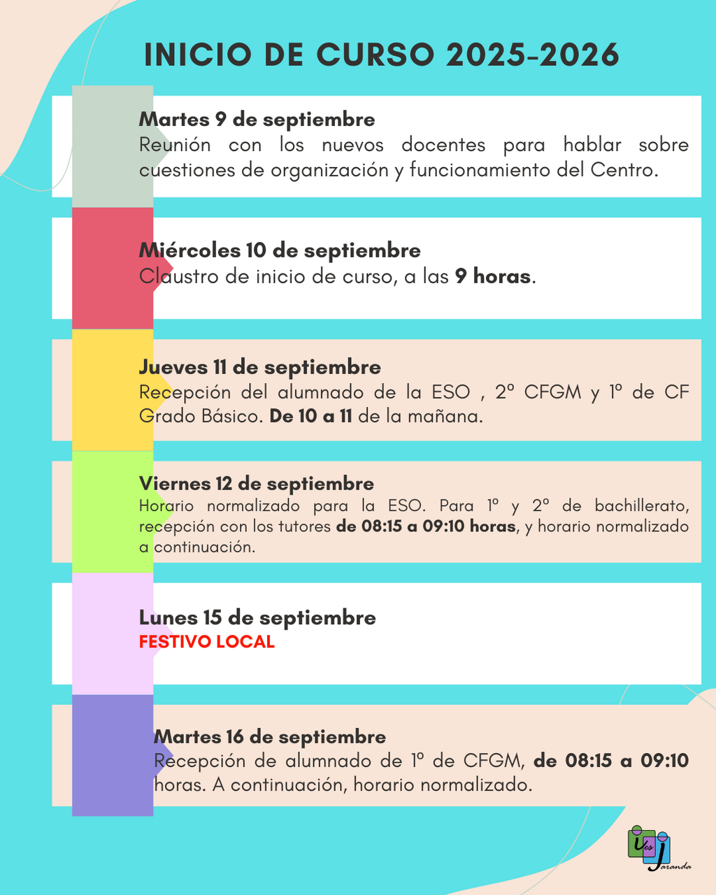 Fechas inicio de curso 2025-2026